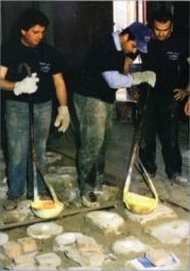 Once cold, the shapes are filled with ground, well pressed to avoid possible breaking or chalk collapses. To liquefy metal, the workers arrange two fusing methane bakes with five quintals crucibles able to get 1500 degrees.